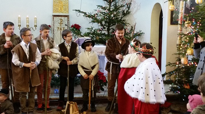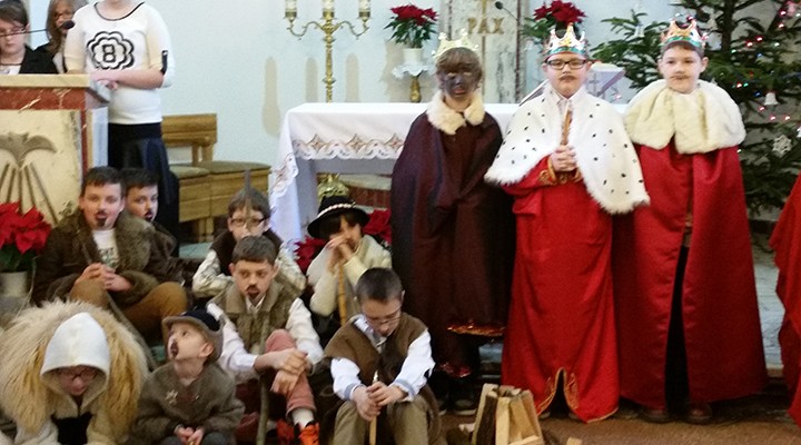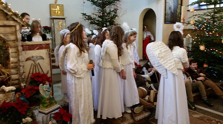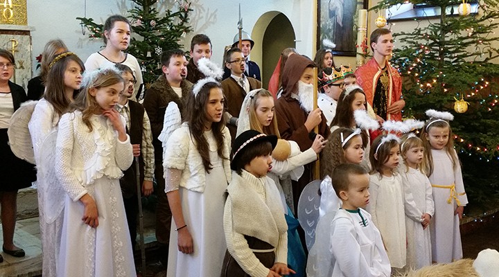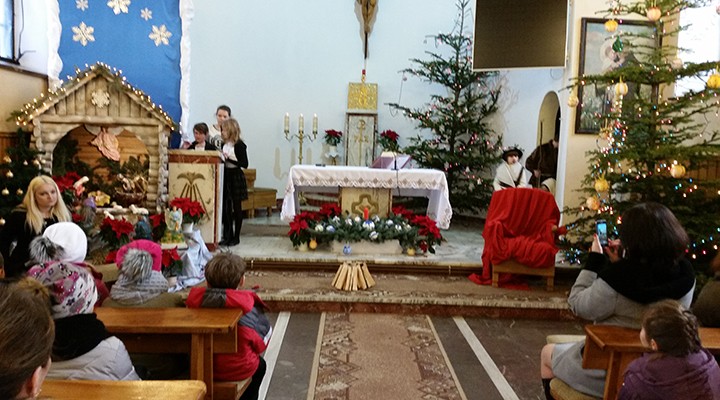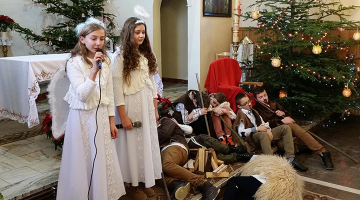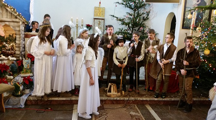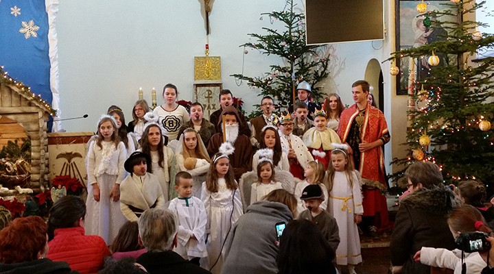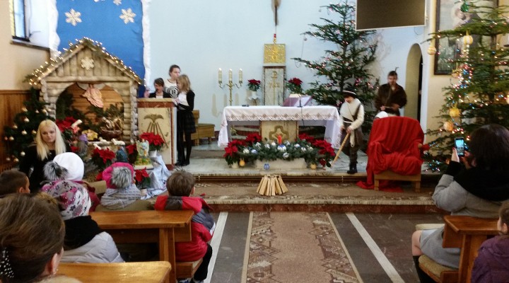 W uroczystość Bożego Narodzenia mieliśmy okazję podziwiać piękne przedstawienie Jasełek w wykonaniu dzieci i młodzieży ze scholi parafialnej z parafii pw. św. Antoniego Padewskiego w Kątach Starych. Podczas dwóch przedstawień spektakl obejrzało liczne grono parafian i gości.